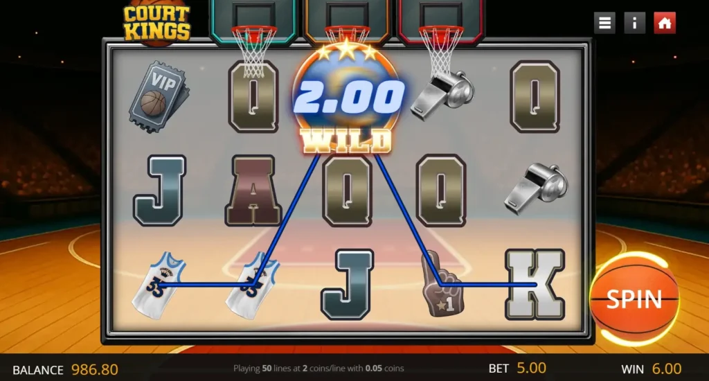 Court Kings is a 5×3 basketball-themed video slot with three unique Free Spins modes. It offers multiple ways to win through multipliers, jackpots, and bonus rounds.